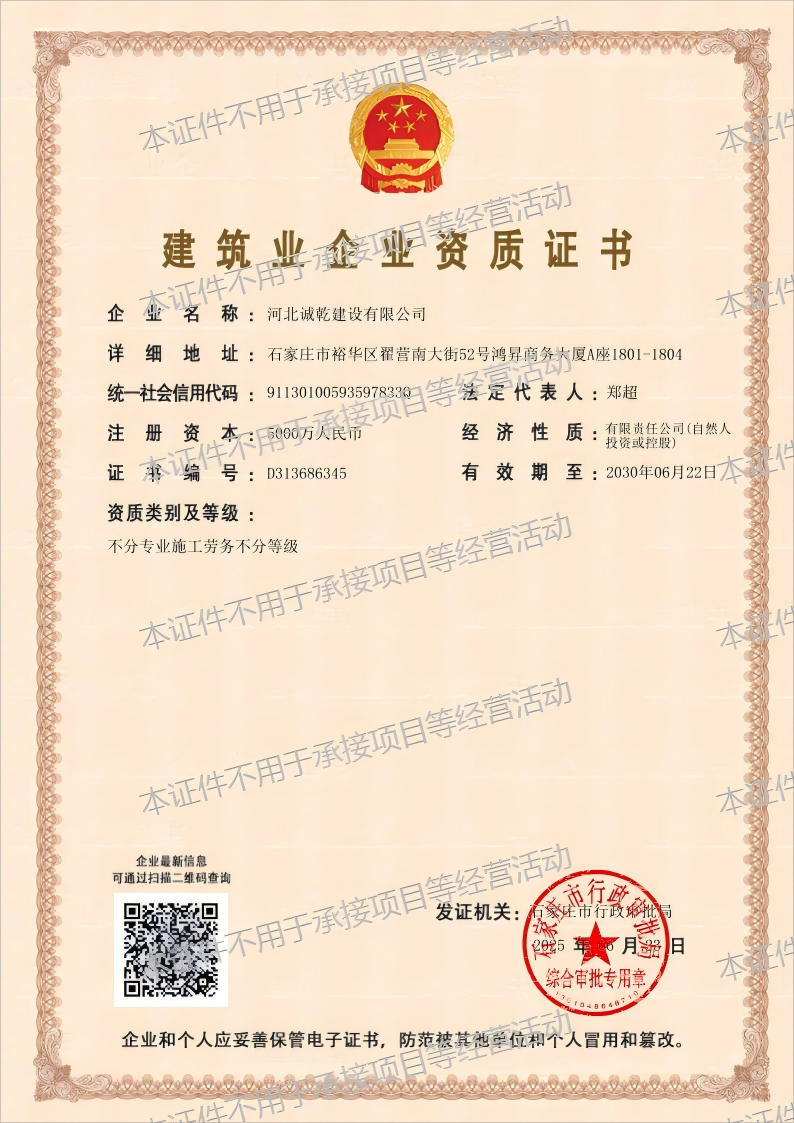 恭賀河北誠乾環保工程有限公司取得市政公用工程施工總承...